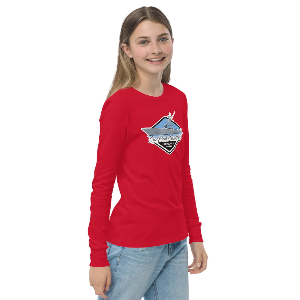 The Youth Long Sleeve Shirt is made of Airlume combed and ringspun cotton, which is known for its softness and durability. The shirt has a regular fit, classic crew neck, and ribbed cuff.
