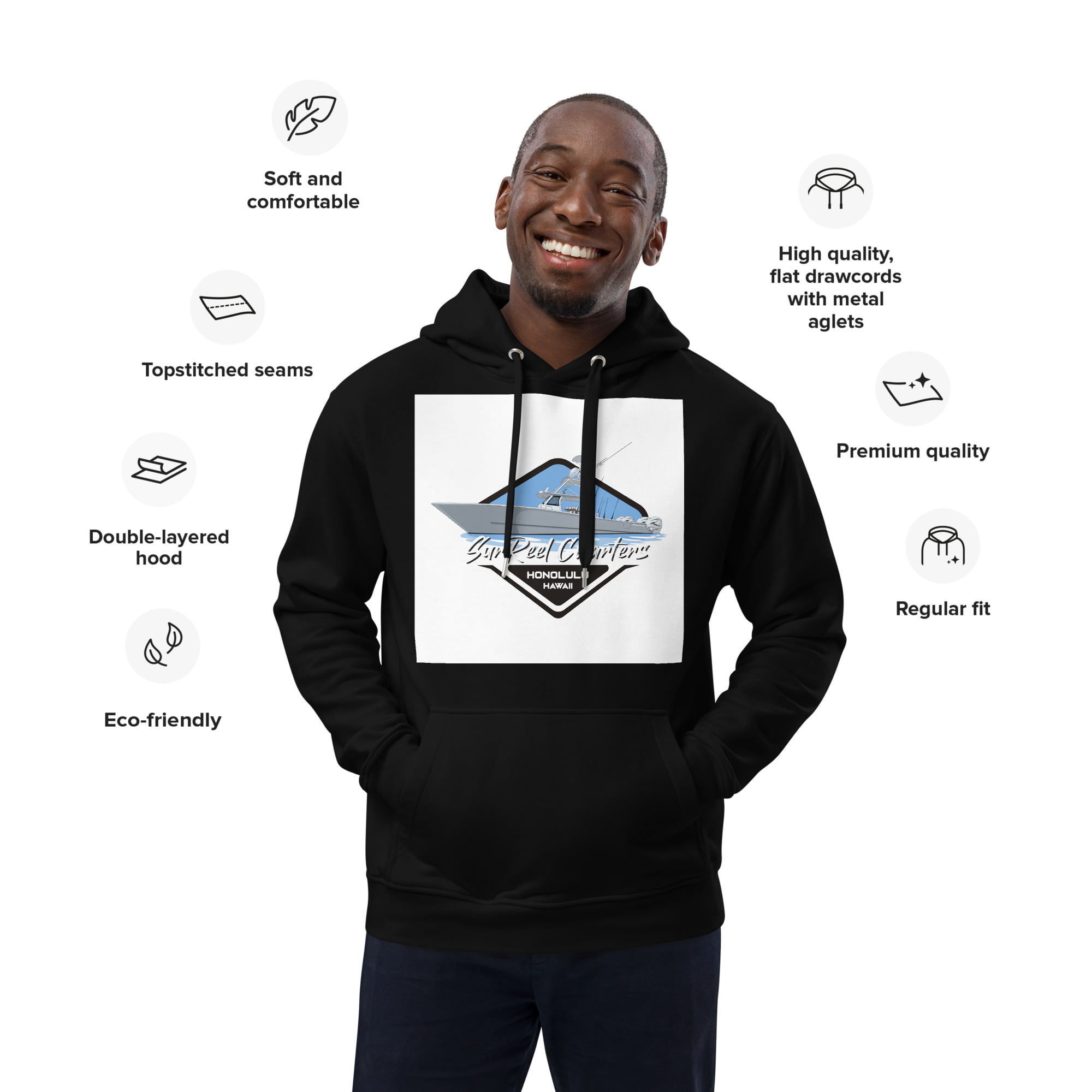 • Flat drawcords with metal eyelets for a premium feel